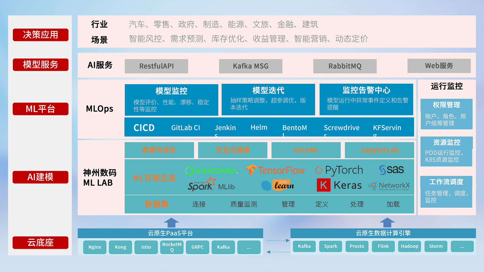 数据+模型双引擎驱动,,,,面向智能服务场景,,,,快速灵活利用AI技术,,,,支持业务决策,,,,助力企业智能化转型破局。。
